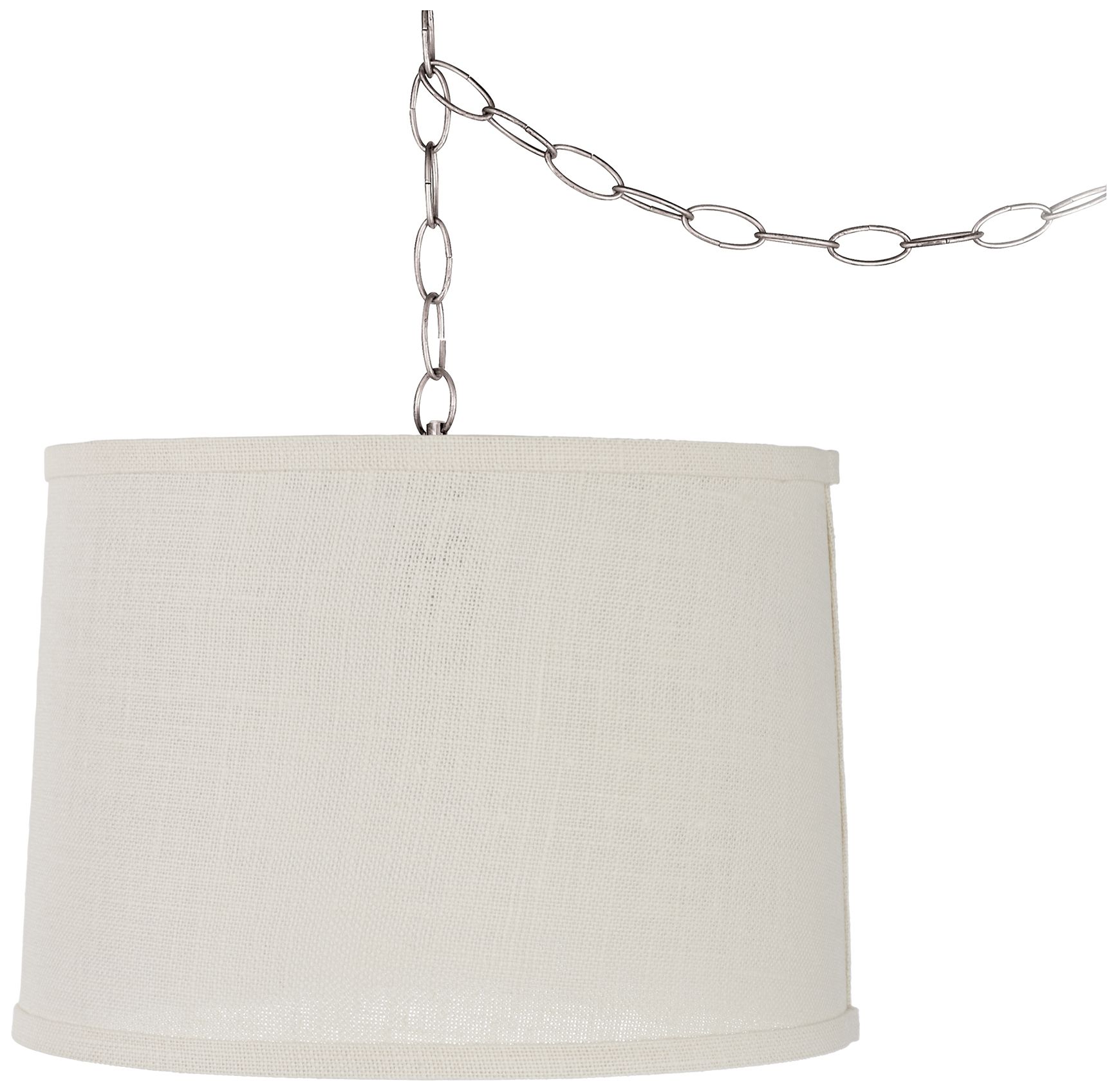 Cream Burlap 14 W Brushed Nickel Plug In Swag Chandelier