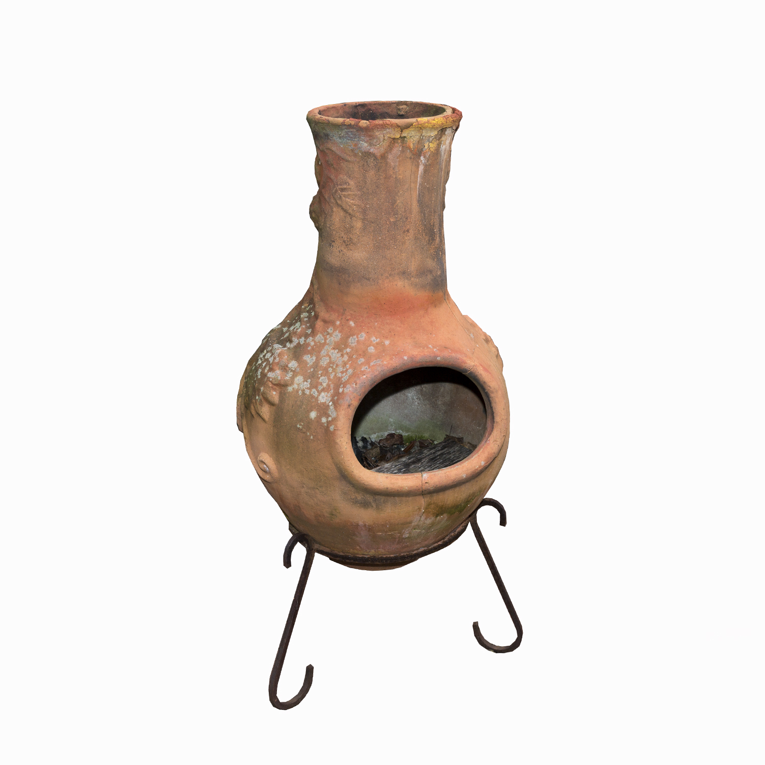 37 In Clay Kd Chiminea With Iron Stand Scroll